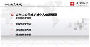 此次征信知识讲座,让每一个同学都意识到了诚信的重要性,作为即将踏入社会的大员工,我们应该理性消费,不攀比,不信网贷,秉承“珍爱信用记录,享受幸福人生”的理念,诚信坦然地面对生活。