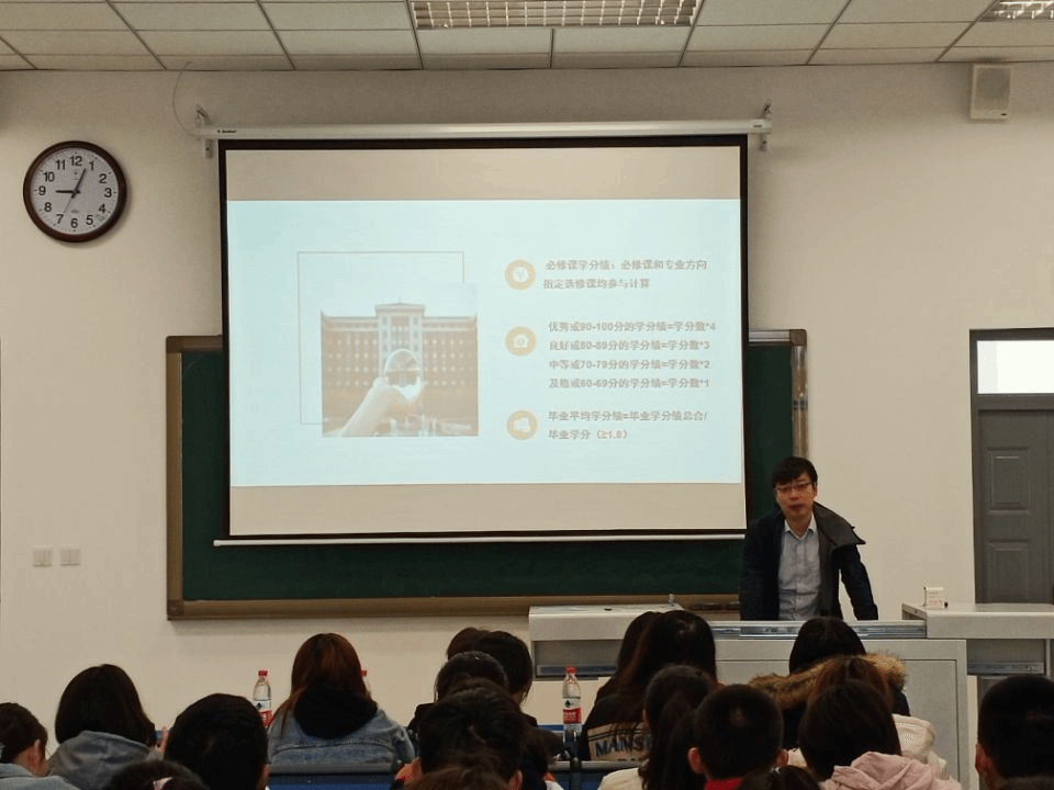 项荣武从人才培养的角度,向同学们详细介绍了学籍管理的相关规定。包括专业课程的学习、教学计划、课程选修、毕业学位证书发放等员工在校期间与学业相关的内容。从学分到选课,从留降级到保研,从考试到转专业,从学习到做人,从现在到将来,既有为师者的教育和指导,也有为父者的关怀与温情。