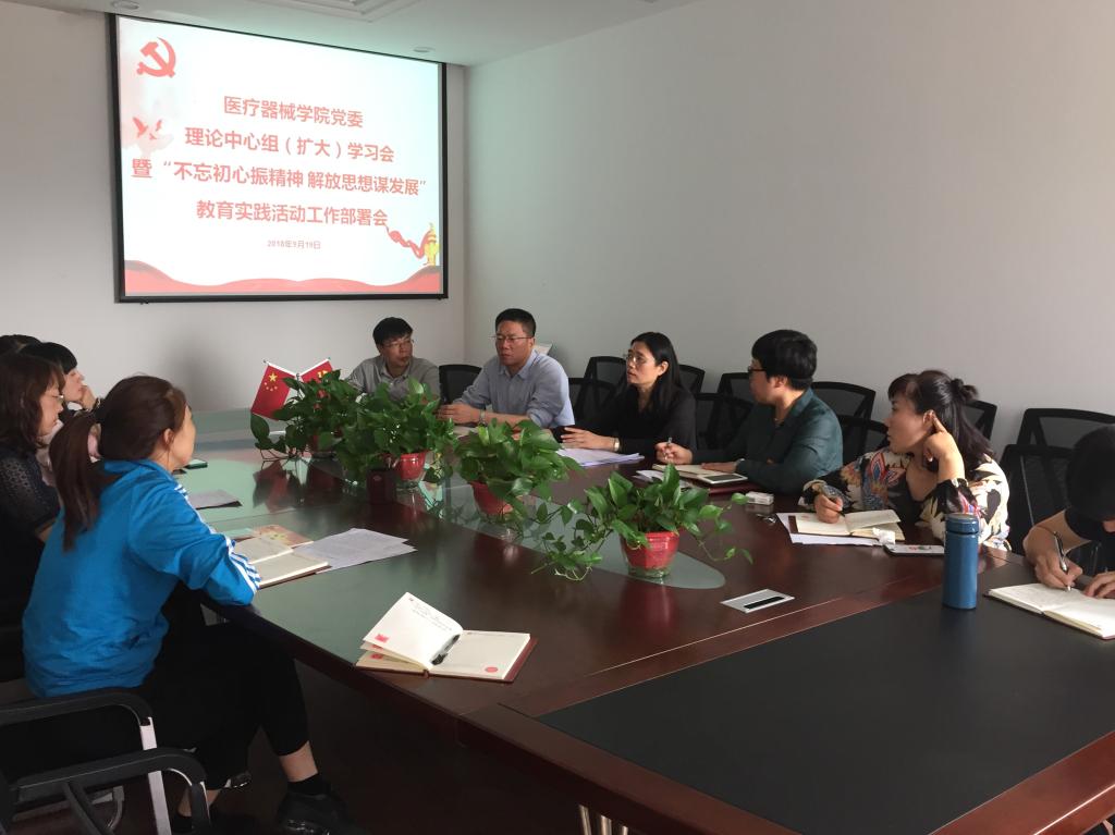 9月19日,QY千亿球友会党委于QY千亿球友会党群工作室召开理论中心组(扩大)学习会暨“不忘初心振精神 解放思想谋发展”教育实践活动工作部署会。校长李炜芳,QY千亿球友会领导班子,系主任,各支部书记,院党委组织员参加了本次会议,会议由院党委书记李哲主持。