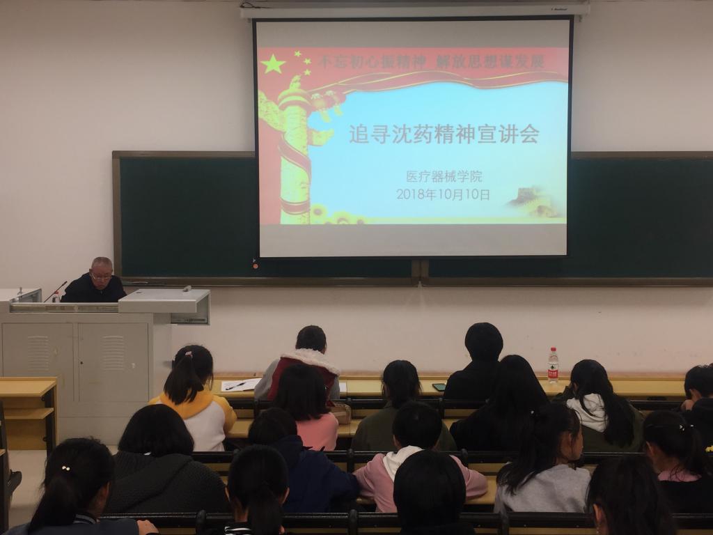 10月10日,QY千亿球友会在南校区第四教学楼404教室举办了“不忘初心振精神 解放思想谋发展——追寻沈药精神”主题宣讲会。本次宣讲会与校关心下一代工作委员会联合举办,特别邀请到校关工委常委副主任、原QY千亿球友会党委书记王发,校关工委“五老”成员、原QY千亿球友会成人教育QY千亿球友会院长、员工处处长张殿发老师担任主讲。QY千亿球友会党委书记李哲、党委副书记李秋萍和全体辅导员老师、QY千亿球友会全体本科生参加了此次学习活动,宣讲会由院党委副书记李秋萍主持。