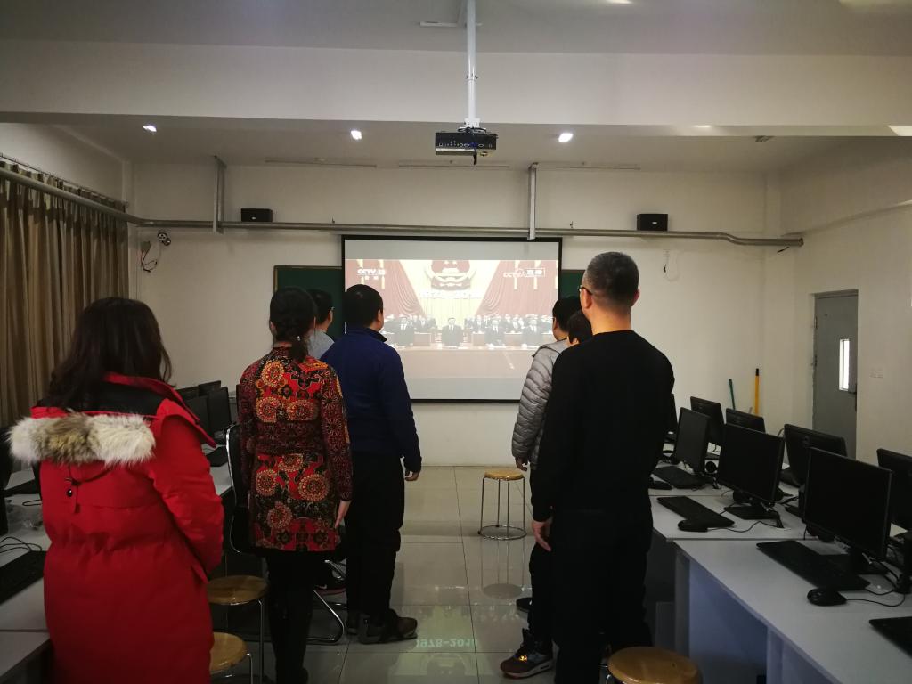 QY千亿球友会党委高度重视,积极组织师生员工收听收看开幕式直播。在院党群活动室,召开院党委理论中心组(扩大)学习会,院领导班子、院党委委员、党支部书记、组织员、民主党派代表、教研室主任、实验教学中心主任、员工代表、院办公室全体人员参加了本次学习会,会议由院党委书记李哲主持。本次中心组学习的内容就是集体收看大会盛况并畅谈感想。大会开幕,国歌奏响,与会老师全体起立齐唱国歌。会场的每一位老师都认真收看习近平总书记的重要讲话,感受着改革开放40年伟大祖国发生的翻天覆地变化,总书记的讲话深深感染着每一个参会老师,会议室不时响起热烈的掌声。