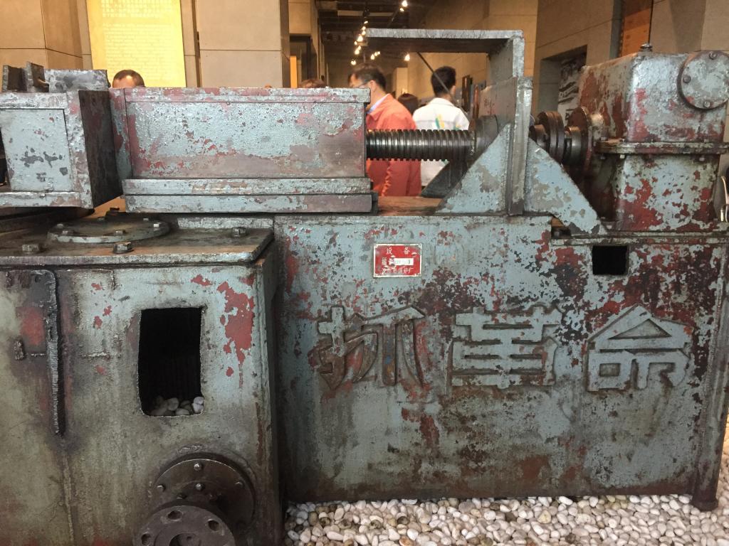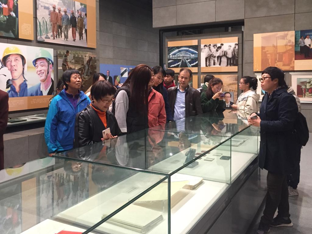 在公益讲解员的带领下,大家先后参观了通史馆、机床馆、铸造馆、汽车馆、机电馆、车模馆、铁西馆等展馆。展馆内陈列有代表中国工业发展历史的老照片、缝纫机、上海牌手表、机床实物等,同时部分展厅还陈列有国际工业强国发展的标志性展品。通过讲解员的讲解,我们了解到铁西曾生产新中国第一枚国徽、第一台水压机等几百个中国工业史上“第一”的新产品。在建国初期,尤其是在“三线建设”的关键历史时期,在“备战备荒为人民”、“好人好马上三线”的时代号召下,辽宁人用艰辛、血汗和生命支援三线,带去技术及装备,投身于四川、贵州、甘肃建设中,为全国的经济和国家实力的提升做出了巨大贡献。展厅内还展示了中国自工业时代至今的发展历程,国家从一穷二白到导弹、火箭、卫星等高科技的成功研发,从大型重工业转型到新型工业化道路,高新技术的产业升级换代,我们正见证着国家的富强与复兴。