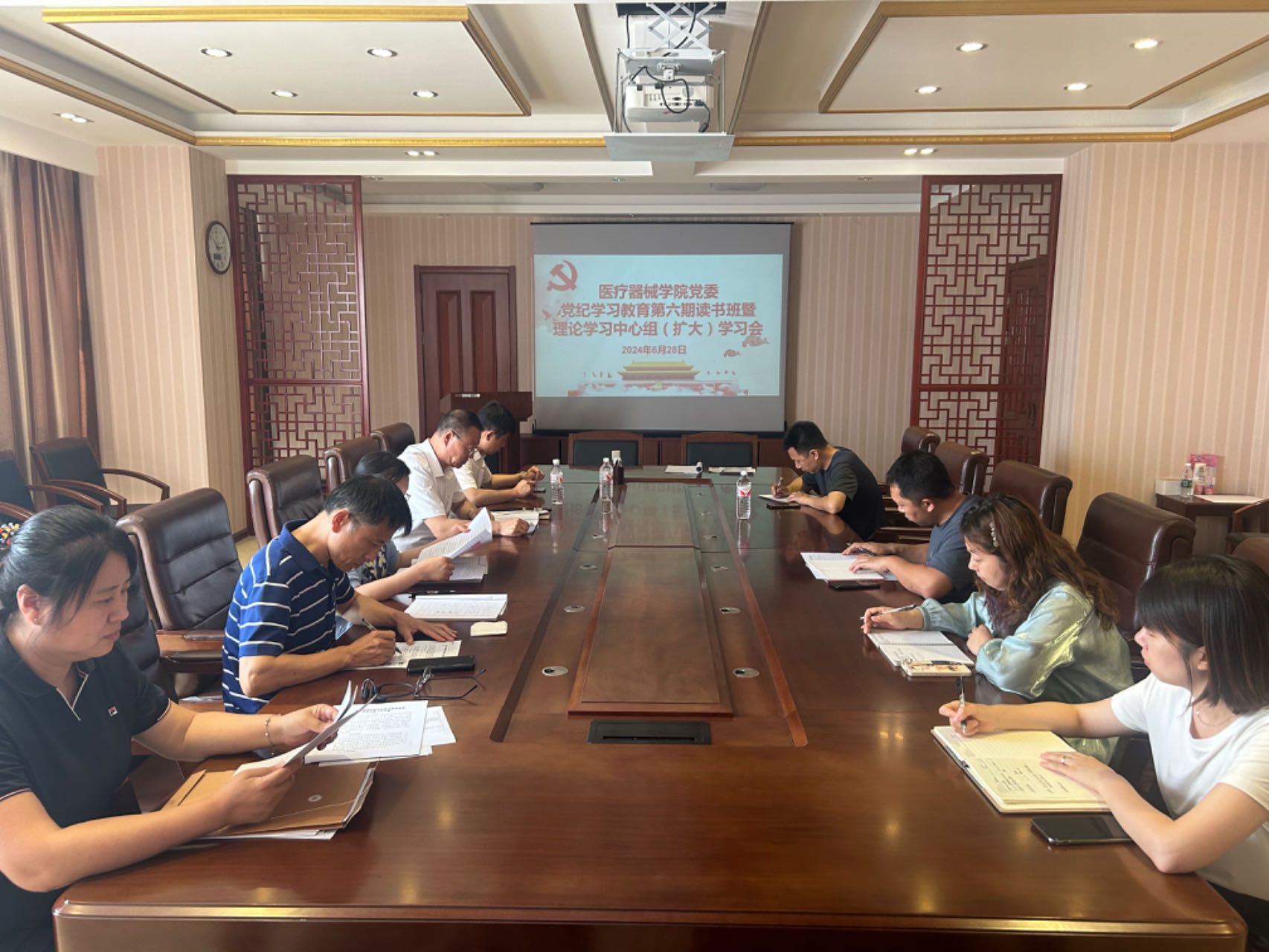 会上,裴志强组织与会人员学习了高校党员领导干部违纪违法典型案例;副书记赵宏格领学《中国共产党纪律处分条例》第十一章;院党委委员梁建坤领学《习近平总书记关于党的生活纪律的重要论述》。
