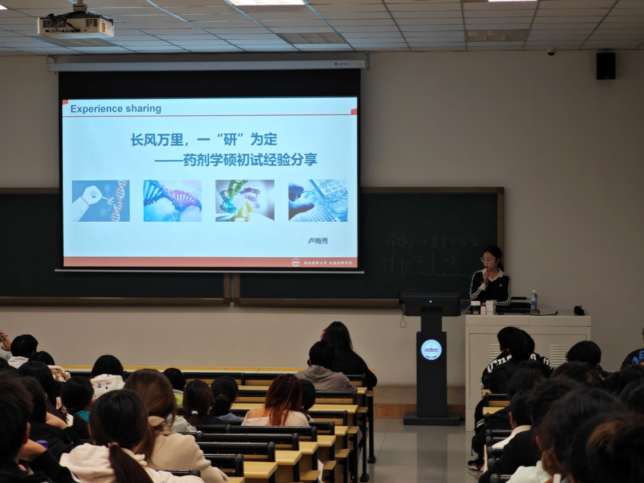 卢梅秀同学以412分的考研分数吸引了在场同学的目光,她围绕对报考专业的信息搜集、初试前的复习,复试前的准备和考研资料的选择等几个方面来进行介绍,同时对如何安排时间和心态的调整提供了宝贵经验。张嘉蓉分享了考研、调剂等经历,并就复习方法、学习进度等给予学弟学妹们详细的建议,同时在初试的备考中应该如何高效的复习进行了讲解,鼓励大家要调整心态,从容应对。