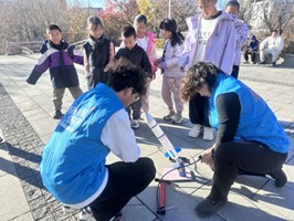 宣讲结束后,孩子们怀着激动的心情前往户外公园,期待已久的水火箭发射实验即将上演。宣讲团的成员们耐心讲解水火箭的工作原理,细致演示发射流程。当按压发射器,水火箭裹挟着水花腾空而起、直冲天际时,孩子们的欢呼声、惊叹声此起彼伏。大家不仅直观感受到了科学的神奇与力量,更在心中埋下了勇于探索、敢于尝试的种子。