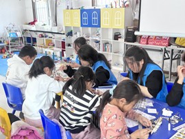 返回教室后,动手实践环节温馨开启。宣讲团成员们提前备好材料包,手把手指导孩子们制作飞机模型。剪裁、折叠、组装,孩子们专注投入,遇到难题时互相请教、分工协作:有的帮忙传递工具,有的分享组装技巧,在互帮互助中深刻体会“大力协同”的精神内涵。每一个亲手完成的模型,都承载着孩子们的专注与满满的成就感。
