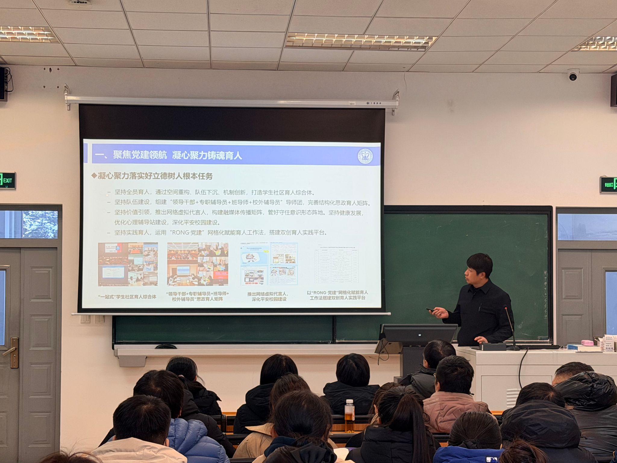 12月26日,QY千亿球友会在南校区三教102召开2025年度工作总结大会,QY千亿球友会领导班子成员及全体教职工参会。