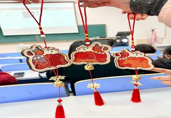 轻音乐缓缓流淌,同学们领取材料包后,纷纷化身“春日手作师”。彩绳、木片、铃铛等材料在指尖流转,大家结合审美与创意,或搭配清新的色彩组合,或设计独特的造型结构,认真穿绳、固定、装饰每一个部件。创作过程中,大家不时交流灵感、分享心得,指尖的细腻动作与风铃部件的轻响交织,成了教室里最动人的旋律。沉浸在手工创作的治愈氛围里,同学们暂时卸下学业的疲惫,在专注与创意中释放压力,一件件融合巧思的风铃作品逐渐成型,每一件都承载着独属于自己的春日心意。