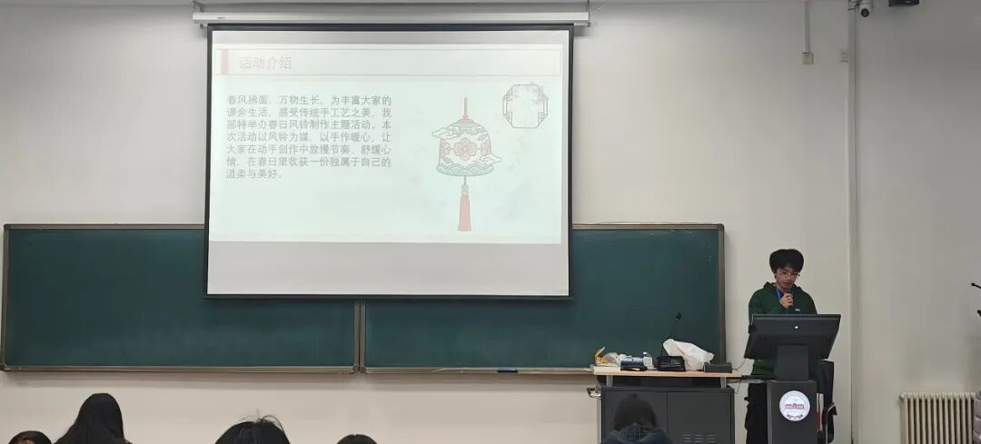 活动伊始,以趣味讲解的形式科普风铃文化,让同学们在讲解中感悟非遗文化魅力。随后,现场播放精心剪辑的风铃制作过程视频,直观展示材料使用、拼接组装等关键步骤,降低创作难度。